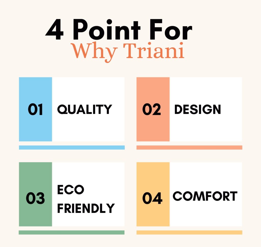 At Triani, we understand that quality is not just about durability but also about the experience. That’s why we focus on creating products that offer an understated sense of luxury and comfort, blending seamlessly into your home and lifestyle. With our commitment to purity, simplicity, and class, we offer a collection that adds a refined touch to any room while remaining effortless in its charm.